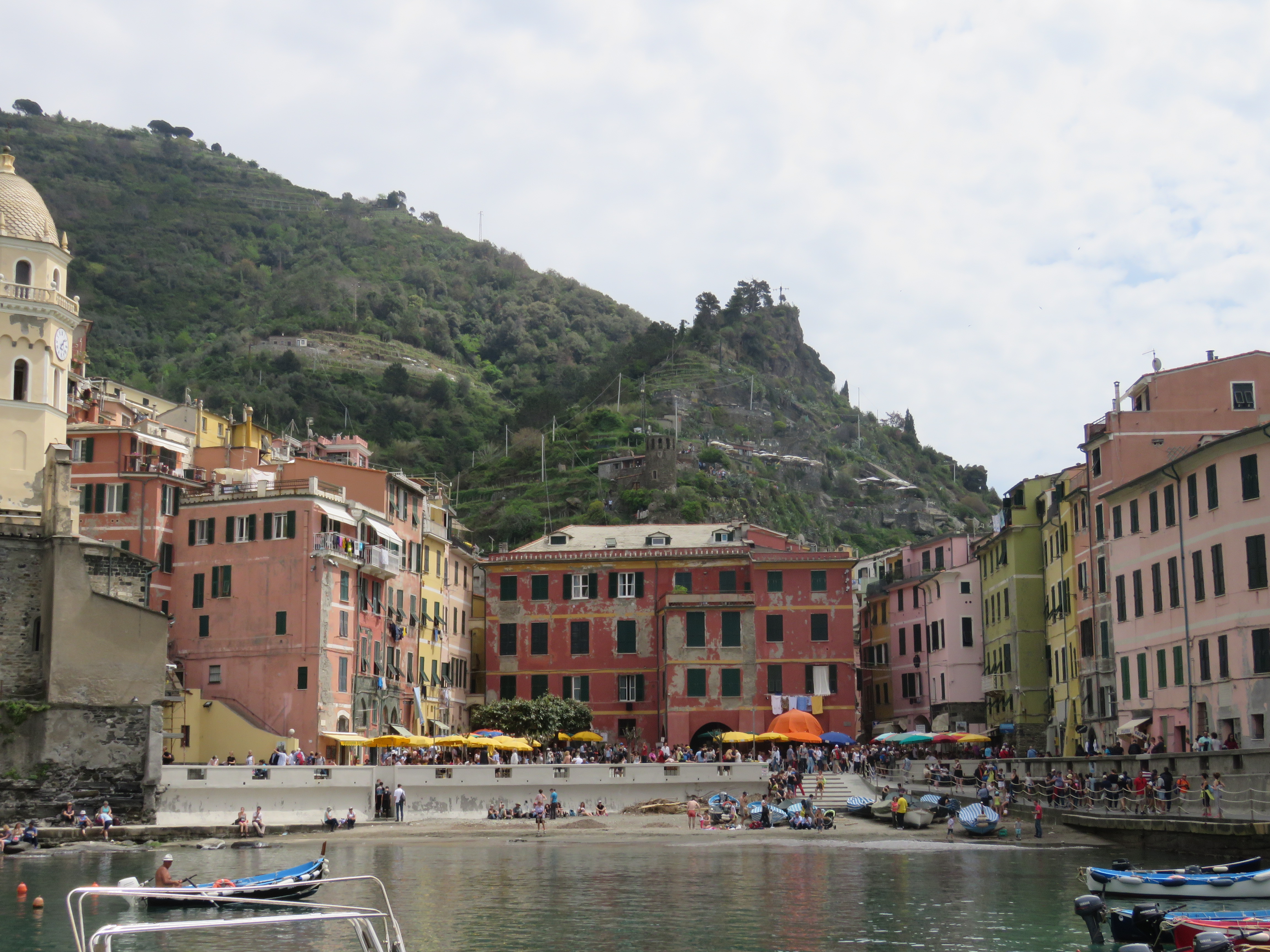 Después de 45 minutos aprox. en el paseo en bote, nos bajamos en Monterosso y ahí caminamos hasta arriba del cerro, conociéndolo por completo. ¡Es que realmente es increíble! Los colores, las casas, la playa, tanta sencillez entre tanta maravilla te deja con la boca abierta. Caminando por las calles decidimos sentarnos en un bar/gelatería donde nosotros gozamos un Aperol Spritz mientras las niñitas se tomaban un helado. Y mientras contemplábamos el día pasar, todos llegamos a la conclusión de que hay pocos lugares tan lindos como éste.