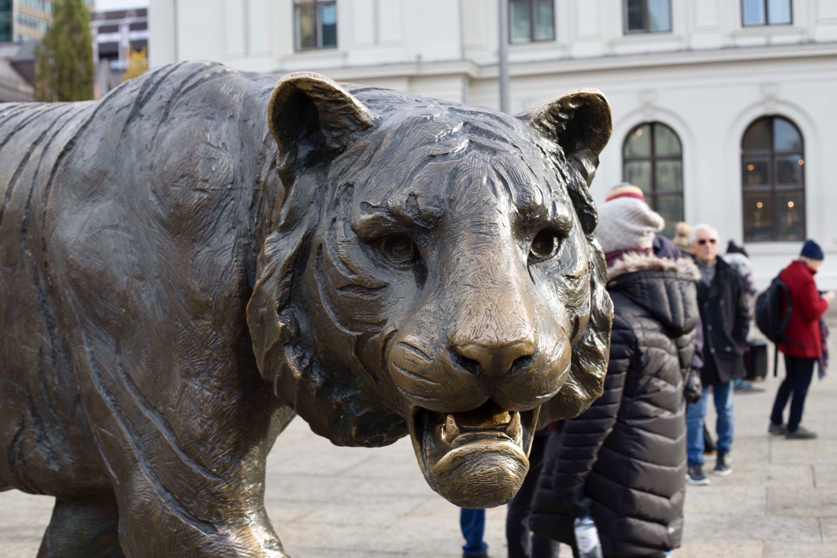 Oslo es conocida como la ciudad del tigre, justamente por esta escultura de un tigre que tiene afuera de la estación central de trenes, conocida por ser un punto de encuentro de la ciudad. Dicen que probablemente, este nombre nace después de que el poeta noruego Bjørnstjerne Bjørnson escribió “Sidste Sang” donde describe una lucha entre un caballo y un tigre; el tigre representa la ciudad peligrosa y el caballo el campo seguro.