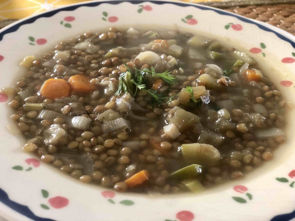 Pierre tiene unos amigos, que ya son como familia, en un pueblo en Aragón en Beceite. Ellos tienen una Posada, que se llama Antigua Posada Roda, y durante el confinamiento estuvieron subiendo distintas y exquisitas recetas a sus redes sociales. Una de ellas, era este plato de lentejas con verduras, que me gustó tanto que lo hago muy seguido en la casa, aprovechando además que sea una instancia para cocinar con mis hijas, quienes me ayudan a pelar y picar las verduras. Así que gracias Montse de la Posada Roda, ¡tu receta se quedó en esta casa para siempre!