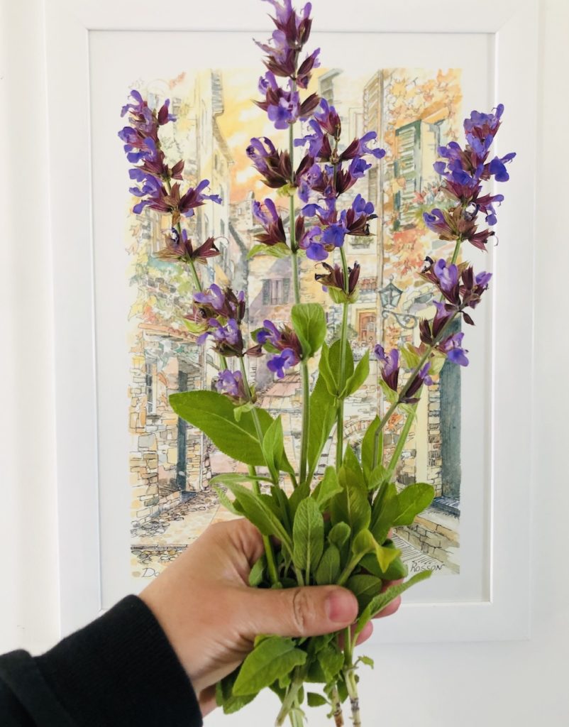 La salvia es parte de la familia de las labiadas, tal como la lavanda, el romero, la albahaca, el orégano y el tomillo. Hay alrededor de 500 tipos de especies de salvia y la más conocida es la Salvia officinalis. Sus matas pueden medir hasta medio metro de alto, son densas y con hojas de tono grisáceo. Sus flores son de color violeta intenso, y su olor es realmente delicioso.