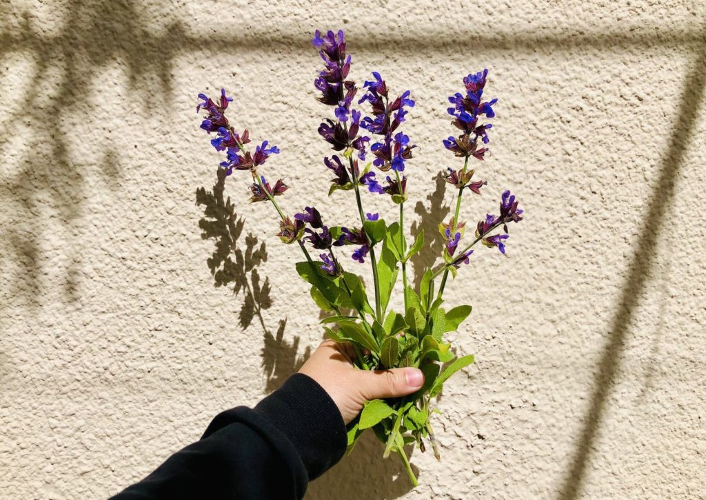 La salvia es parte de la familia de las labiadas, tal como la lavanda, el romero, la albahaca, el orégano y el tomillo. Hay alrededor de 500 tipos de especies de salvia y la más conocida es la Salvia officinalis. Sus matas pueden medir hasta medio metro de alto, son densas y con hojas de tono grisáceo. Sus flores son de color violeta intenso, y su olor es realmente delicioso.